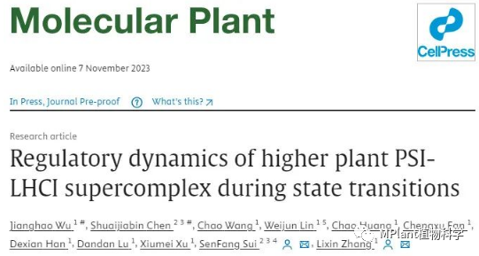 2023117日,生命科学学院张立新研究团队与南方科技大学/清华大学隋森芳研究组合作在Molecular Plant在线发表了题为Regulatory dynamics of higher plant PSI-LHCI supercomplex during state transitions”的研究成果,提出了高等植物光适应过程状态转换的调控新机制。