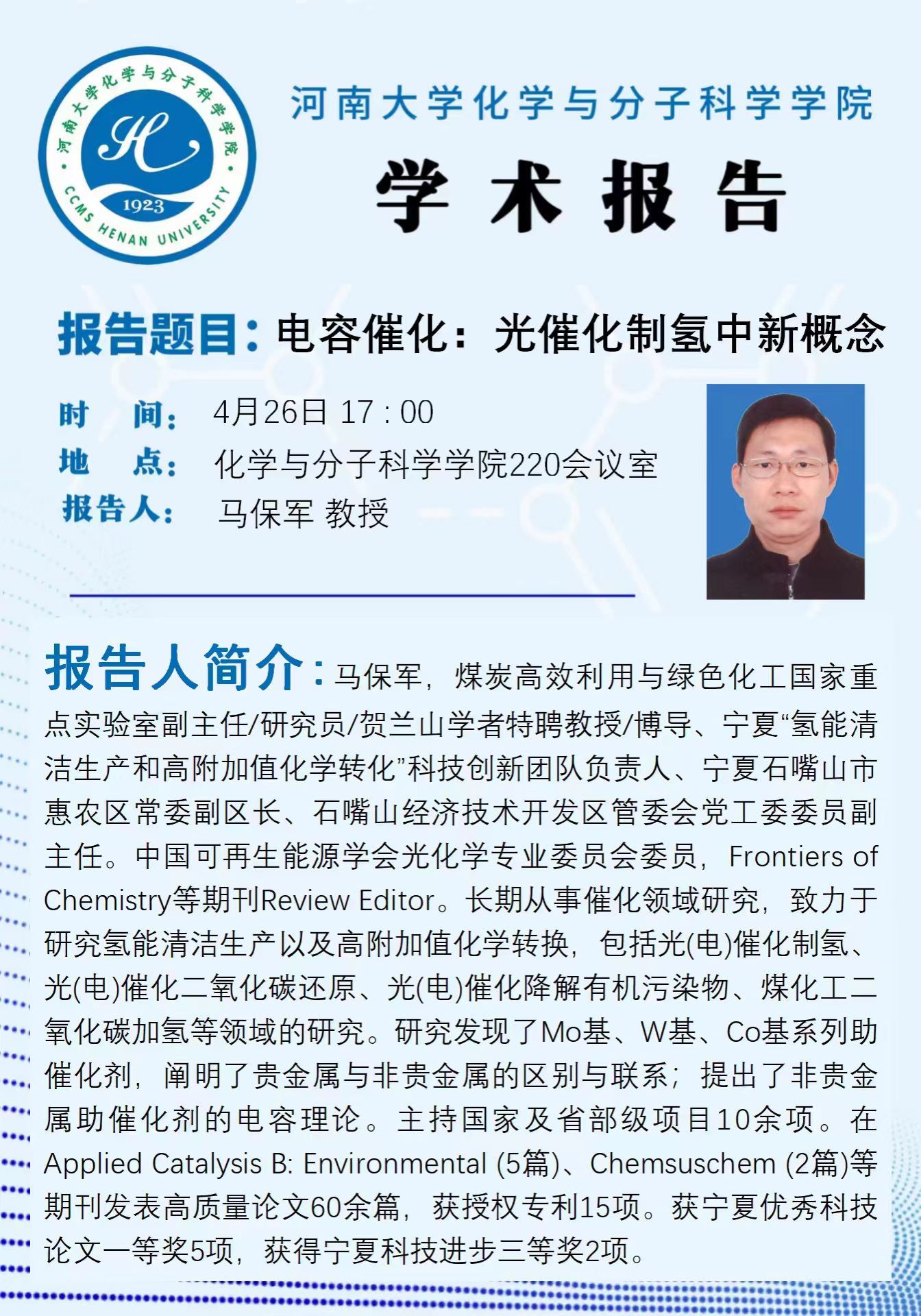 马保军:电容催化:光催化制氢中新概念(时间:4月26日)