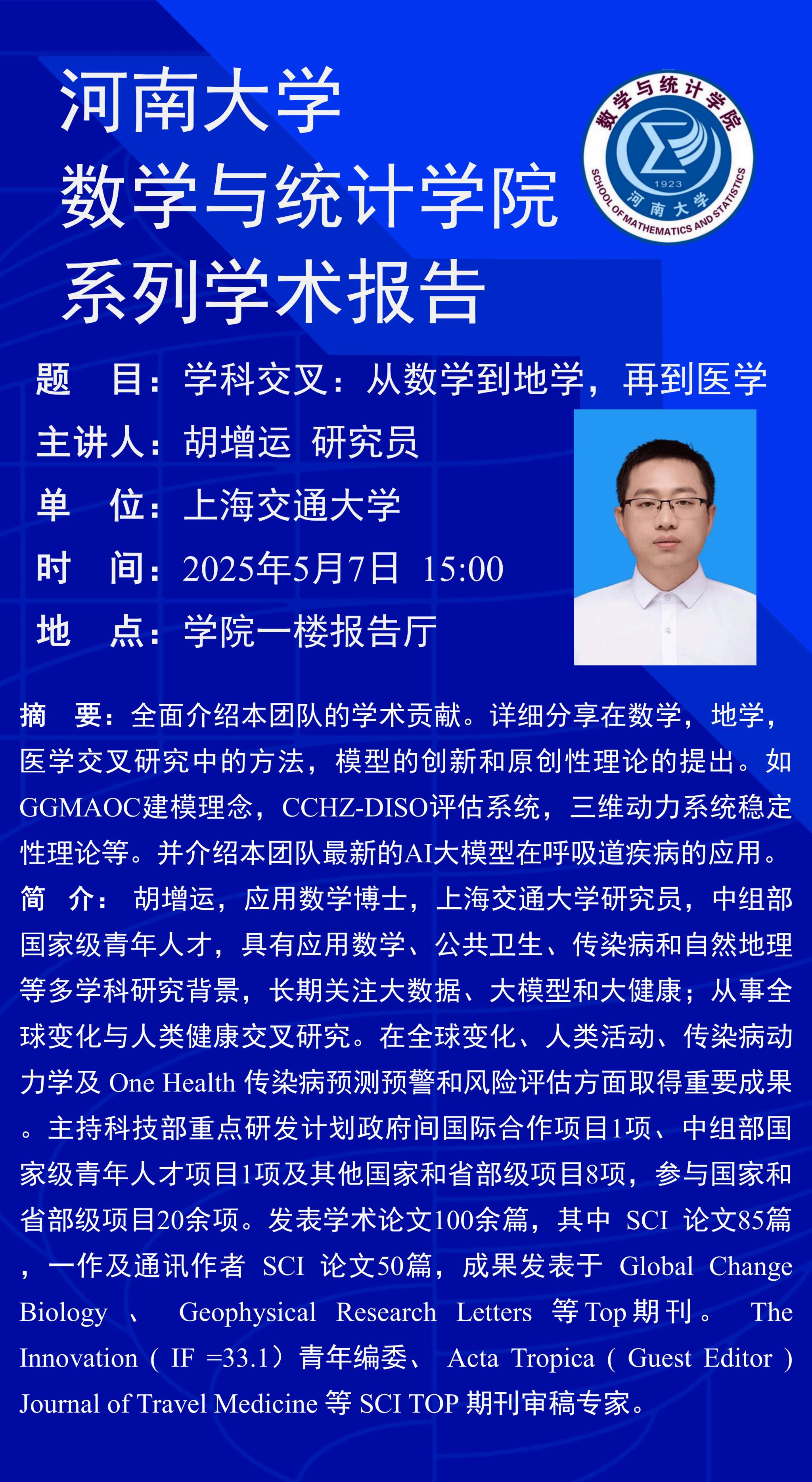 胡增运:学科交叉:从数学到地学,再到医学(时间:5月7日)