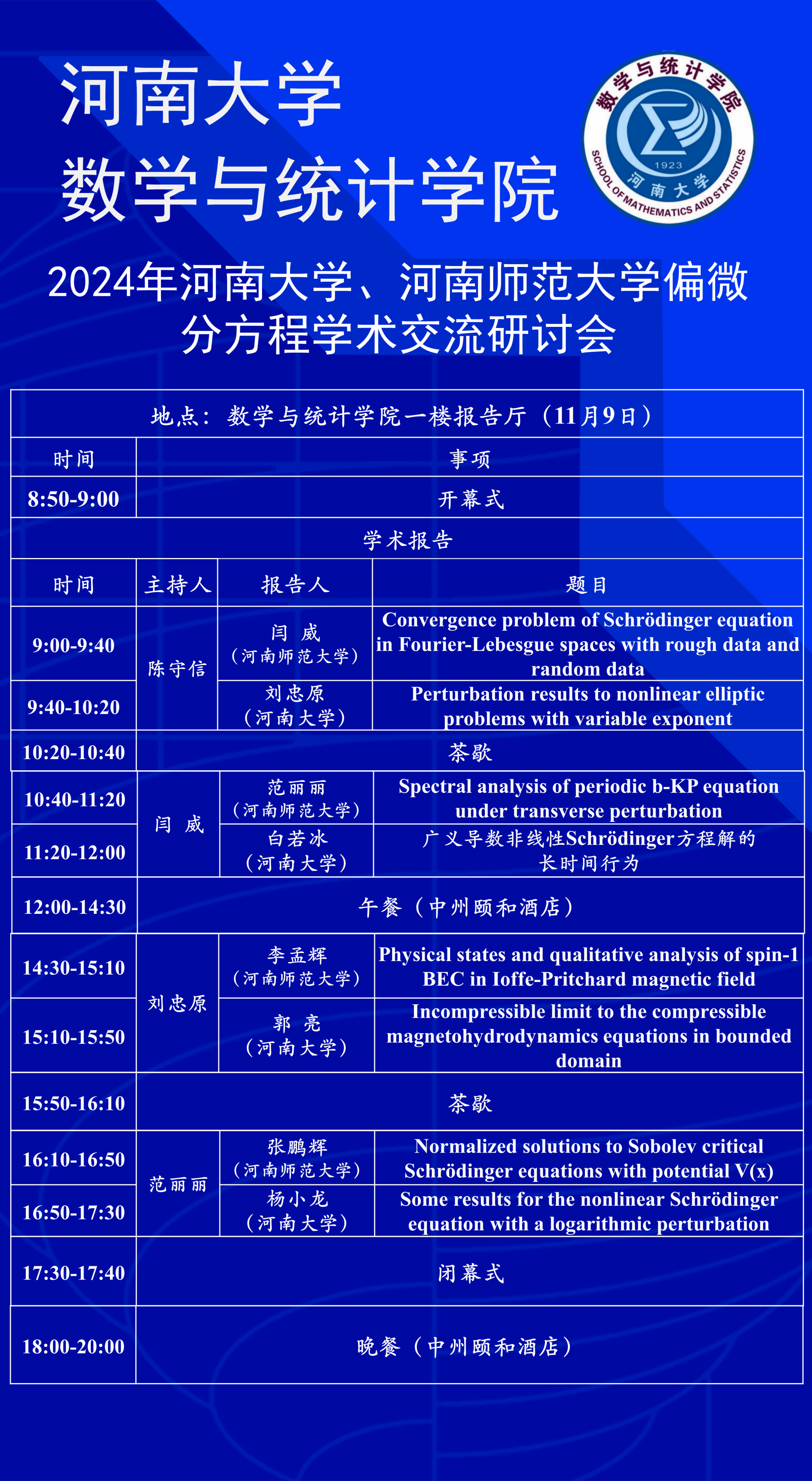 2024年菲律宾欧博游戏官网、河南师范大学偏微分方程学术交流研讨会(时间:11月8日-11日)