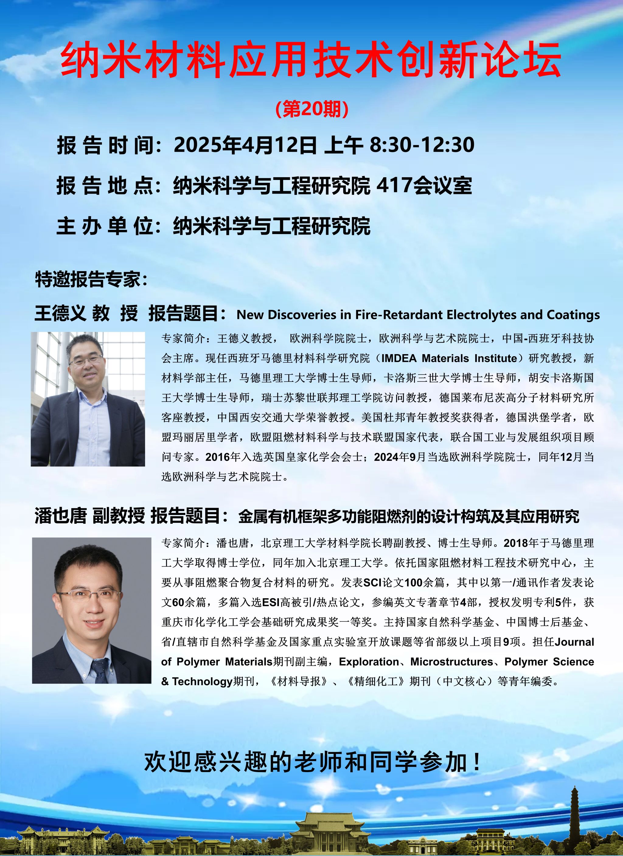纳米材料应用技术创新论坛(第20期) (时间4月12日)