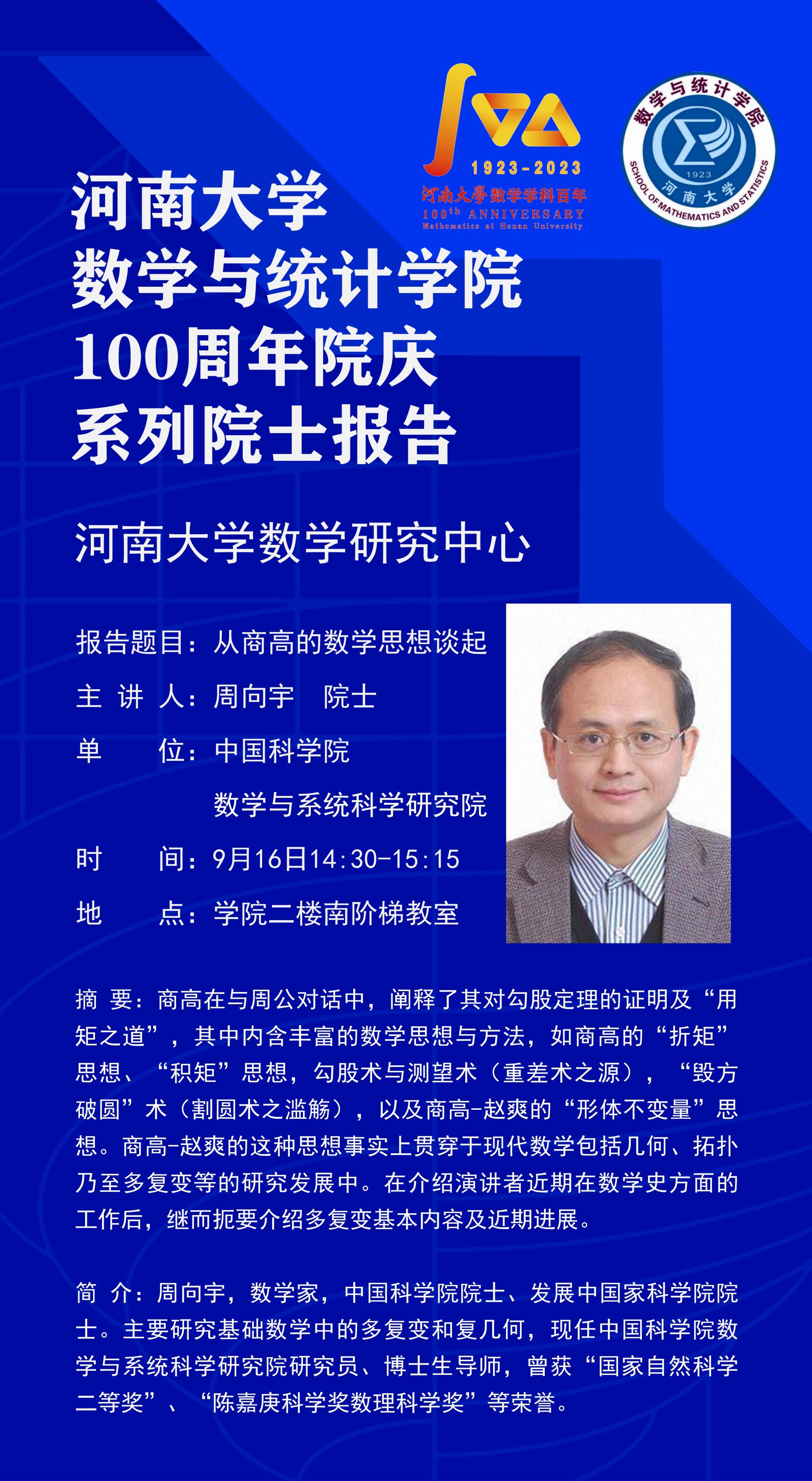周向宇院士:从商高的数学思想谈起(时间:9月16日)