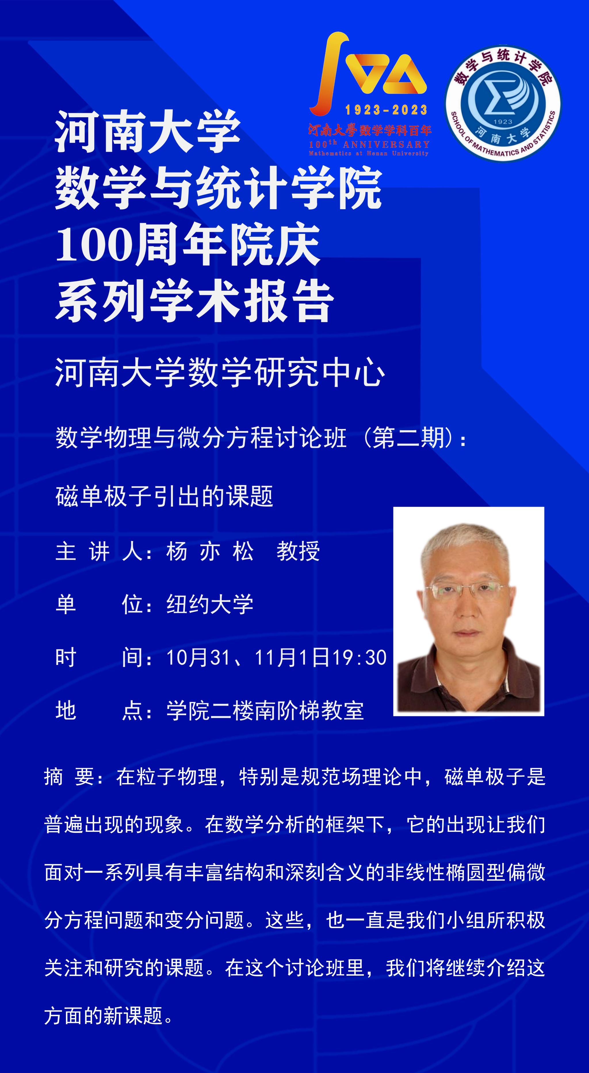 杨亦松:数学物理与微分方程讨论班 (第二期):磁单极子引出的课题 (时间:10月31日,11月1日)
