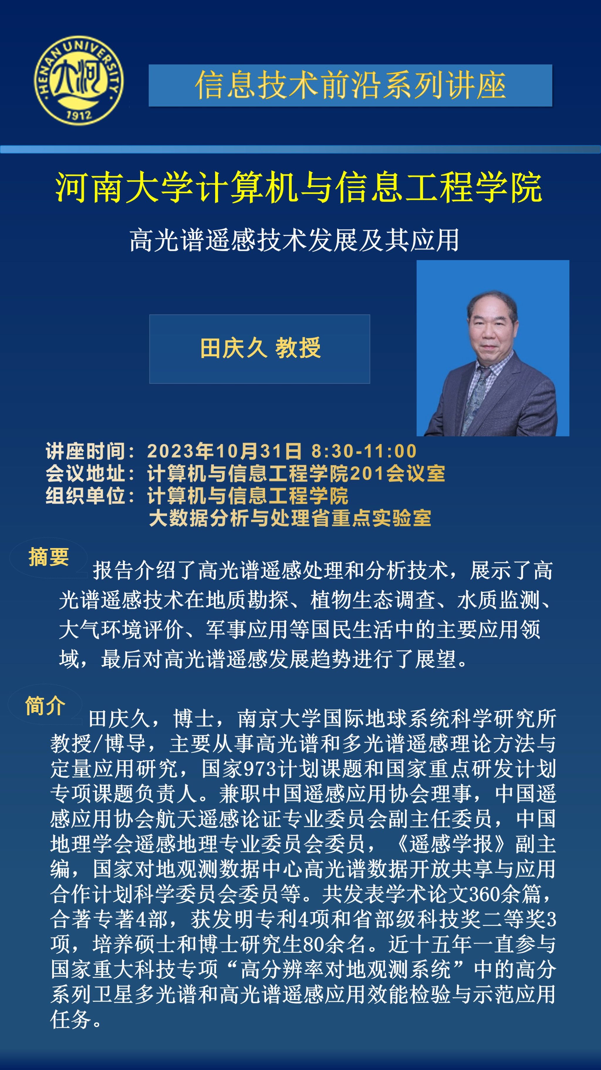 田庆久:高光谱遥感技术发展及其应用(时间:2023年10月31日)