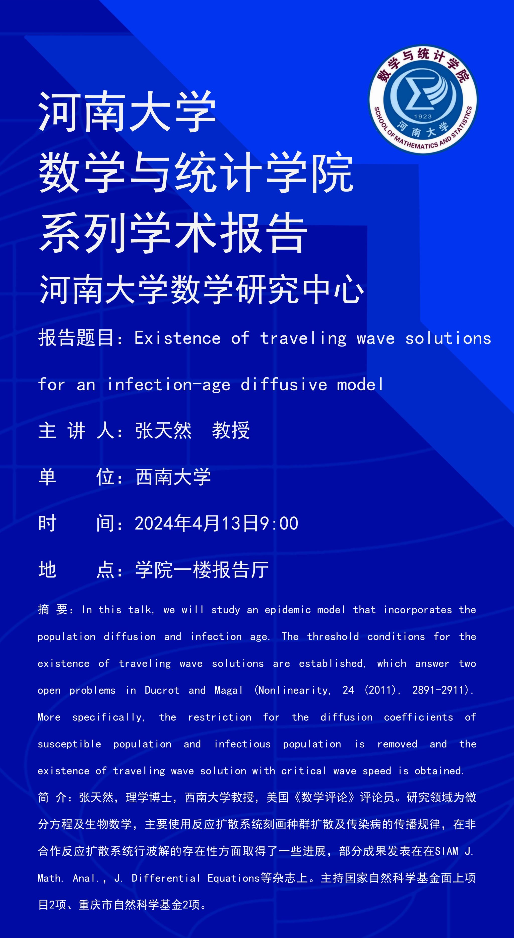 张天然 :Existence of traveling wave solutions for an infection-age diffusive model(时间:4.13)